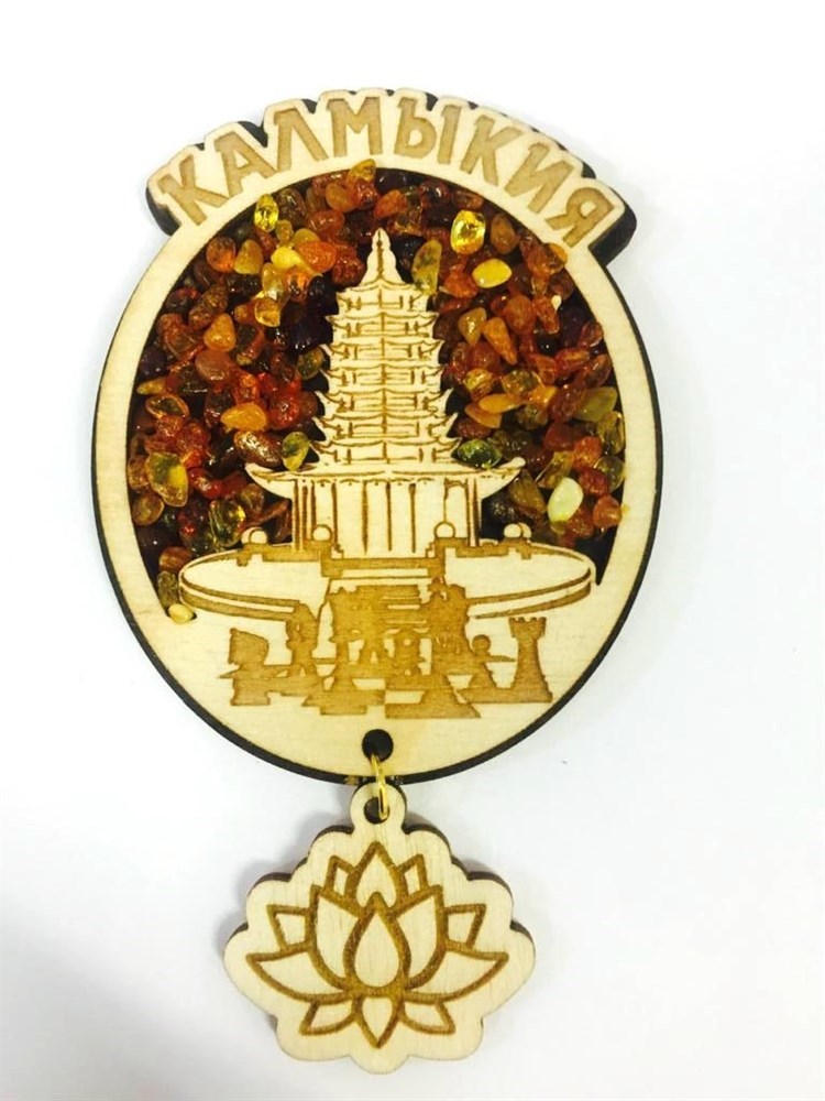 Магнит с янтарем Пагода с фурнитурой Калмыкия, Элиста 26956 - 26956